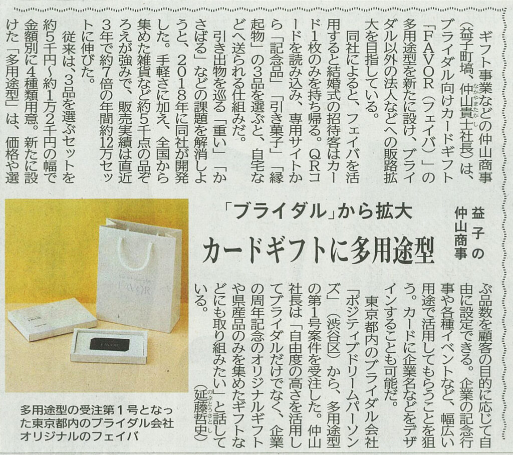 カードタイプギフトFAVORの販売実績、今後の展開や取り組みについて取り上げられています。